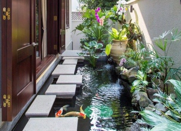 Beberapa tahun terakhir tren membuat sebuah kolam ikan dibelakang rumah sudah menjadi hal wajib. Tentu saja kolam ikan ini bisa anda pasang di segala tempat bangunan, baik pada bagian depan rumah ataupun bagian belakang rumah. Ada beberapa desain kolam yang juga bisa anda pasang di dalam ruangan. Kolam ikan tentu saja akan menambah keindahan dan keasrian rumah. Dengan memiliki kolam ikan Anda bisa bersantai dan menenangkan pikiran atau menemukan inspirasi ide yang bagus dengan melihatnya.